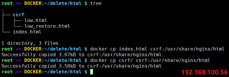 2、"DOCKE虚拟机_B(IP:192.168.100.56)"--> 部署了一个NGINX用于模跨站攻击网站(会在网站上创建相应的攻击页面);